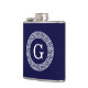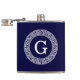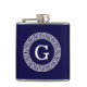 Navy Blue Wht Greek Key Rnd Frame Initial Monogram Hip Flask