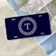 Navy Blue Wht Greek Key Rnd Frame Initial Monogram License Plate