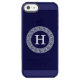 Navy Blue Wht Greek Key Rnd Frame Initial Monogram Uncommon iPhone Case