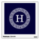 Navy Blue Wht Greek Key Rnd Frame Initial Monogram Wall Sticker
