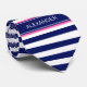 Navy Blue Wht Horiz Stripe Hot Pink Name Monogram Tie