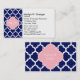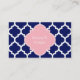 Navy Blue Wht Moroccan #5 Pink 3 Initial Monogram Business Card