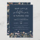 Navy Blue Wildflower Boho Chic First Birthday Invitation