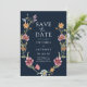 Navy Blue Wildflowers Save The Date Cards. This stylish & elegant wedding save the date cards features gorgeous hand-painted watercolor Wildflowers. Find matching items in the Navy Blue Wildflowers Dreams Collection.