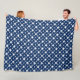Trendy blanket with a pattern of large and small white stars on a navy blue background.