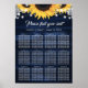 Navy Blue Wood Sunflower Wedding Seating Chart 12