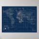 Navy Blue World Map Poster