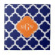 Navy Blue Wt Chevron Pumpkin Quatrefoil 3 Monogram Ceramic Tile