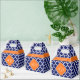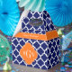 Navy Blue and White Moroccan Quatrefoil Trellis Pattern #5, Pumpkin Orange Quatrefoil 3 Initial Monogram Label