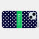 Navy Blue Wt Polka Dot Emerald Green Name Monogram Case-Mate iPhone Case