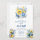 Navy Blue Yellow Painted Floral Gold Wedding Invitation