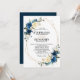 Navy Blue Yellow Rose Boho Geometric Wedding Invitation
