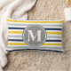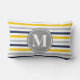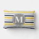 Navy Blue Yellow Striped Pattern Monogram Lumbar Pillow