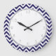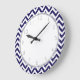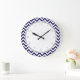 Navy Blue Zigzag Stripes Pattern Large Clock