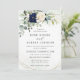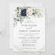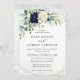 Navy Blush Floral Greenery Geometric Wedding Invitation