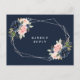 lovely watercolor navy blue and blush flowers design with a geometric silver frame on wedding RSVP cards. You can change the color and text to match your theme.