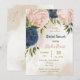 navy blush flowers green leaves bridal shower invitation