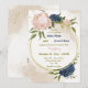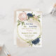 navy blush flowers green leaves geometric wedding invitation
