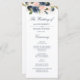an elegant navy blue and blush pink floral design with blue text on white background. You can personalize the text and colors on this wedding program template.
