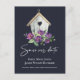 NAVY BOHO RUSTIC FLORAL BIRDHOUSE SAVE THE DATE ANNOUNCEMENT POSTCARD