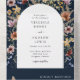 Navy Boho Wedding All in One Invitation. This stylish & elegant all-in-one invitation wedding invitation features gorgeous hand-painted watercolor wildflowers arranged as a lovely frame along with an RSVP card that includes a QR code. Find matching items in the Navy Boho Wildflower Wedding Collection.