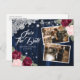 Navy Burgundy Blush Floral Wood Lace Wedding Photo Announcement Postcard
