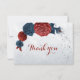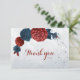 navy blue and burgundy flowers on an elegant geometric frame botanical thank you card