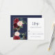 Clean and simple modern response card. Cutomizable background in Navy blue with burgundy and navy watercolor flowers. Can be customized for any occasion, text colors and background colors changed to match your occasion.