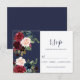 Navy Burgundy Modern Simple Navy Botanical wedding RSVP Card