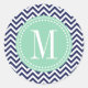 Navy Chevron Zigzag Personalized Monogram Classic Round Sticker