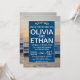Navy Coastal Seascape Sunset Summer Beach Wedding Invitation