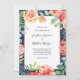 Navy Coral Floral Bloom Wedding Invitation