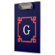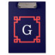 Navy, Coral Red Greek Key Frame #2 Init Monogram Clipboard