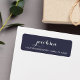 Elegant midnight blue and cream return address labels add an upscale touch to your invitations or correspondence. Design features a deep navy background with cream typography in a mix of calligraphy and block styles.