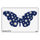 Navy blue with a pattern of white daisy flowers on a butterfly shape.
