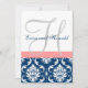 Navy Damask Coral Monogram Wedding Invitation