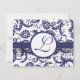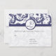 Monogram Vintage Damask Swirls Navy Blue Damask Wedding Invitation- If you would like a glossy finish (glossy on front side only) order the basic, linen or metallic papers - for a matte finish order recycled, felt or speckled.