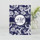 Navy Damask Swirls Wedding Invitation