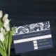 Navy Blue and White Damask Response Cards RSVP Elegant Vintage Unique Damask Swirly Floral.