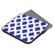 A bold, geometric pattern of large and small navy diamonds on a white background. The white forms a lattice which separates the dark blue diamond shapes.