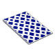 A bold, geometric pattern of large and small navy diamonds on a white background. The white forms a lattice which separates the dark blue diamond shapes.
