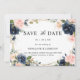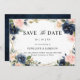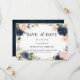 Dark navy blue floral geometric wedding Save the Date featuring elegant bouquet of navy blue, royal blue , white , blush rose and sage green eucalyptus leaves and elegant glitter geometric neutral frame. Please contact me for any help in customization or if you need any other product with this design.