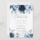 Navy Dusty Blue Elegant Floral Pastel Wedding Invitation