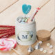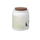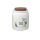 Beautiful candy jar featuring navy and dusty blue flowers and green leaves