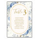 Navy Dusty Blue Floral Spring Bloom Wedding Table Number