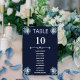 Make your reception tables unforgettable with these navy wedding table cards that blend artistic elegance with personalized charm. Featuring soft boho florals in every corner and delicately sketched borders, each card is thoughtfully designed to complement a wide range of wedding styles. The bold table number takes center stage, sitting just above a customizable guest name list that adds a practical yet romantic touch. Whether you're celebrating in a rustic barn, coastal venue, or lush garden, these cards guide guests to their seats while elevating your décor.