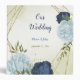Beautiful wedding photo album featuring navy and dusty blue flowers and green leaves