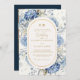 Navy Dusty Blue Gold Floral Spring Bloom Wedding Invitation