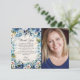 Navy Dusty Blue White Floral Birthday Photo Thank You Card