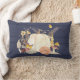 Navy Fall Autumn Pumpkin Wildflower Blue Wood Lumbar Pillow